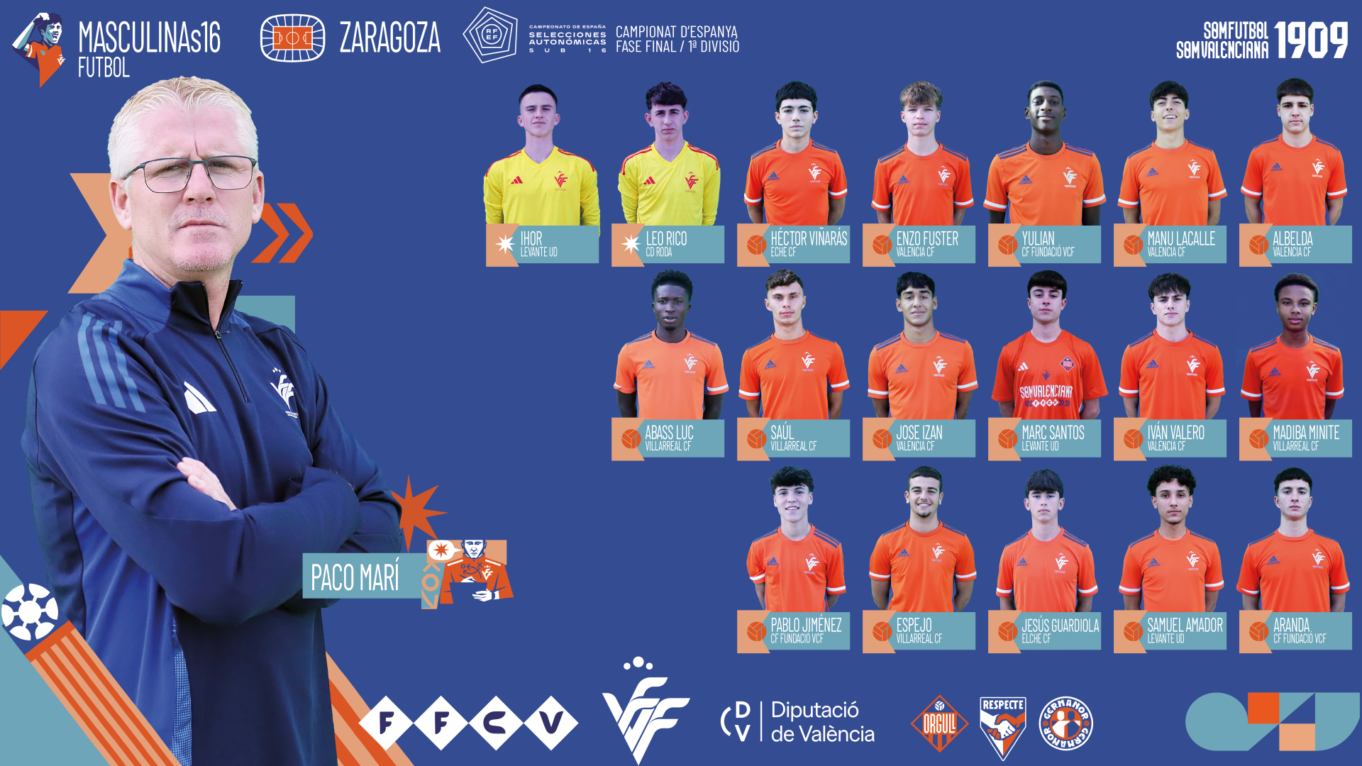 La Federació de Futbol de la Comunitat Valenciana ha hecho pública la lista de convocados de la Selecció Valenciana masculina sub16 de fútbol para disputar la fase final del Campeonato de España.