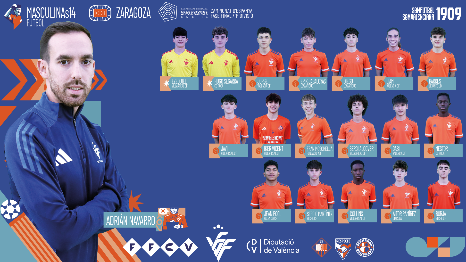 La Federació de Futbol de la Comunitat Valenciana ha hecho pública la lista de convocados de la Selecció Valenciana masculina sub14 de fútbol para disputar la fase final del Campeonato de España.