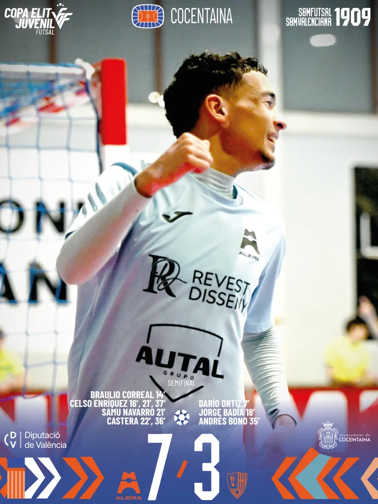 Árbitros: Samuel Gabaldón, Francisco Oliva, Sergio Bernardino y David Aguilar. Amonestaron a Pablo García y Braulio Correal (Alzira FS).