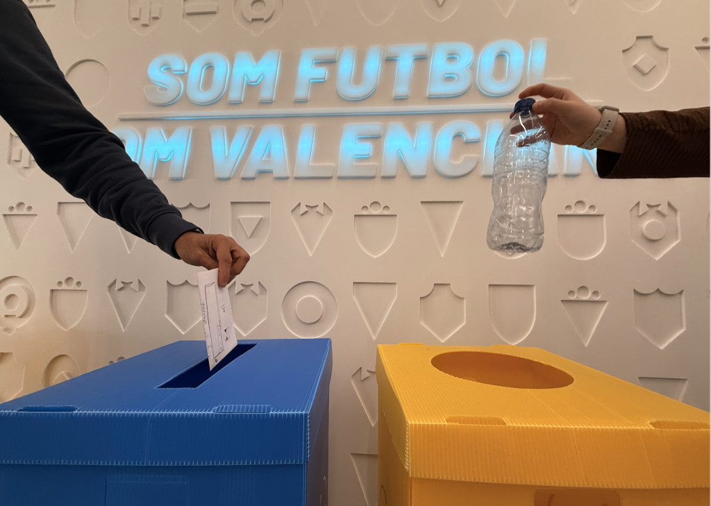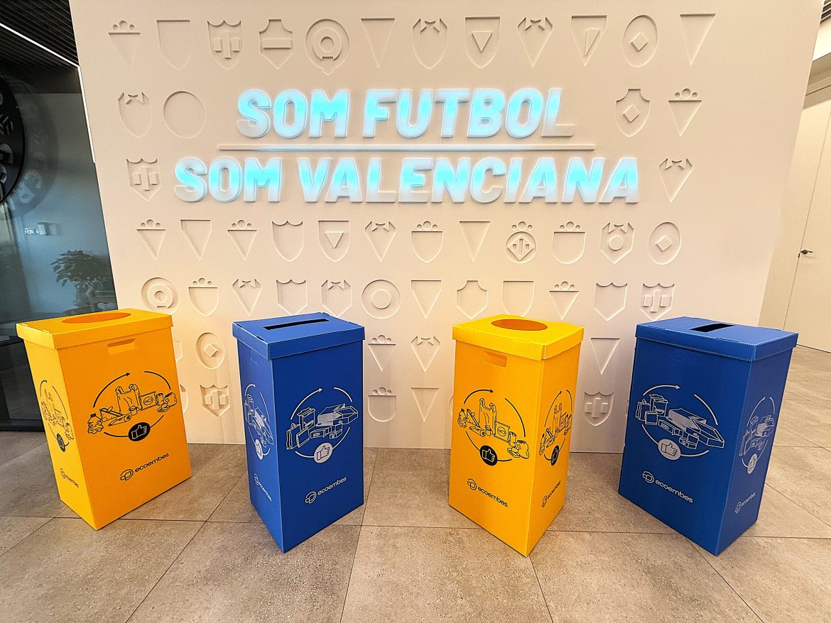 Esta iniciativa suposa la instal·lació de 22 papereres d’envasos i 22 de paper-cartró en les diferents dependències federatives, tant en la seu central de València com en les delegacions i en la Mutualitat de Futbolistes.